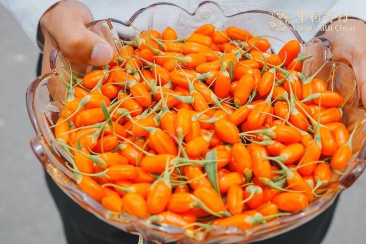 “第一次尝了一下新鲜的枸杞,果肉特别的饱满,颜色非常的鲜亮,咬一下,枸杞的汁都‘爆出来'了,太好吃了!”俄罗斯籍短视频博主环环说。